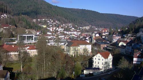 Wie auf der interaktiven Karte ersichtlich liegt Bad Wildbad idyllisch im romantischen Tal der Enz. Die dicht bewaldete Hügel des Nordschwarzwalds umschließen den bekannten Kurort. Das Hotel liegt in ruhiger Lage etwa 25 km südlich der nächst größeren Stadt Pforzheim. Bad Wildbad ist ein idealer Ausgangspunkt für Wanderungen im Schwarzwald und um die umgebende Region zu erkunden.
