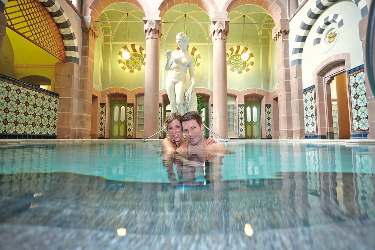 Das Palais Thermal ist ein Erlebnis- und Saunabad, das besonders durch sein arabisch-maurische Dekor besticht. Das liebevoll restaurierte Thermalbad versetzt die Badegäste in eine Badekultur zurück wie vor 200 Jahren. Prunkvolle und nostalgische Elemente machen den Aufenthalt zu einem Erlebnis. Auch noch nach über 10.000 Jahre sprudeln in der alten Urquelle Bad Wildbads täglich frisches und reichhaltiges Thermalwasser an die Oberfläche. >> Palais-Thermal